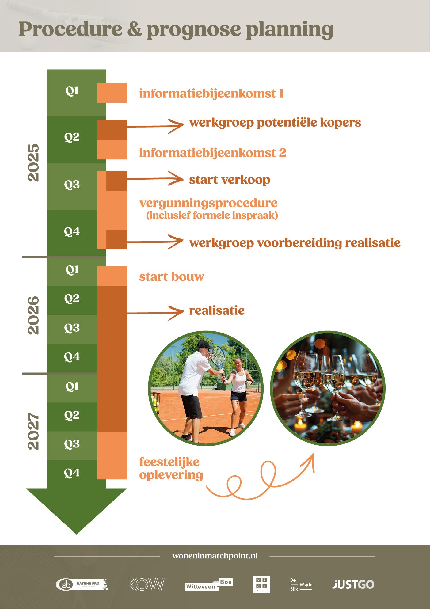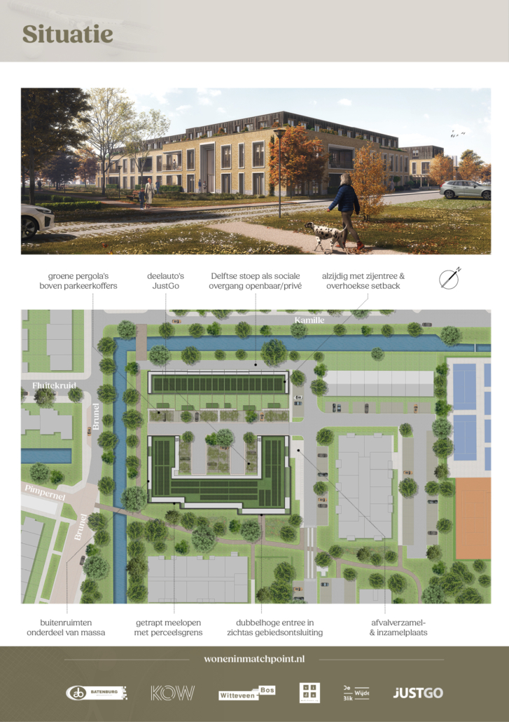 Deze ontwikkeling maakt deel uit van de herontwikkeling van de voormalige Tennisvereniging Mijdrecht (TVM). In totaal worden er 54 woningen ontwikkeld. Samen bieden ze een divers woonaanbod voor een brede, lokale doelgroep, met 11 eengezinswoningen, 12 studio’s voor starters en 31 twee- en driekamerappartementen voor doorstromers en senioren.