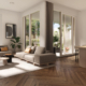 Het appartementengebouw is ontworpen in een U-vorm, met een markante entree aan het park. Via de hoofdentree bereikt u een ruime hal met vide, waar de lift en het trappenhuis naar de verdiepingen zijn gesitueerd. Vanuit deze hal is ook het binnenterrein snel bereikbaar, waar de parkeerplaatsen liggen.
